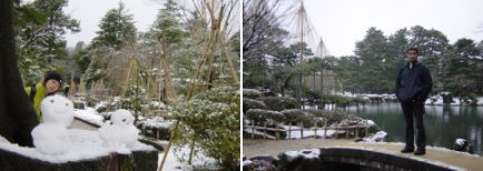 百万石もありながら幕末には何していたの?って感じの加賀藩ですが,芸術や文化の発展には大きく貢献しています. そのうちの一つが兼六園でしょうか. 特に冬場の雪吊りは有名で,幸いなことに年末に降ったという雪が少し残っており,うっすらと雪化粧した兼六園を見ることができました.